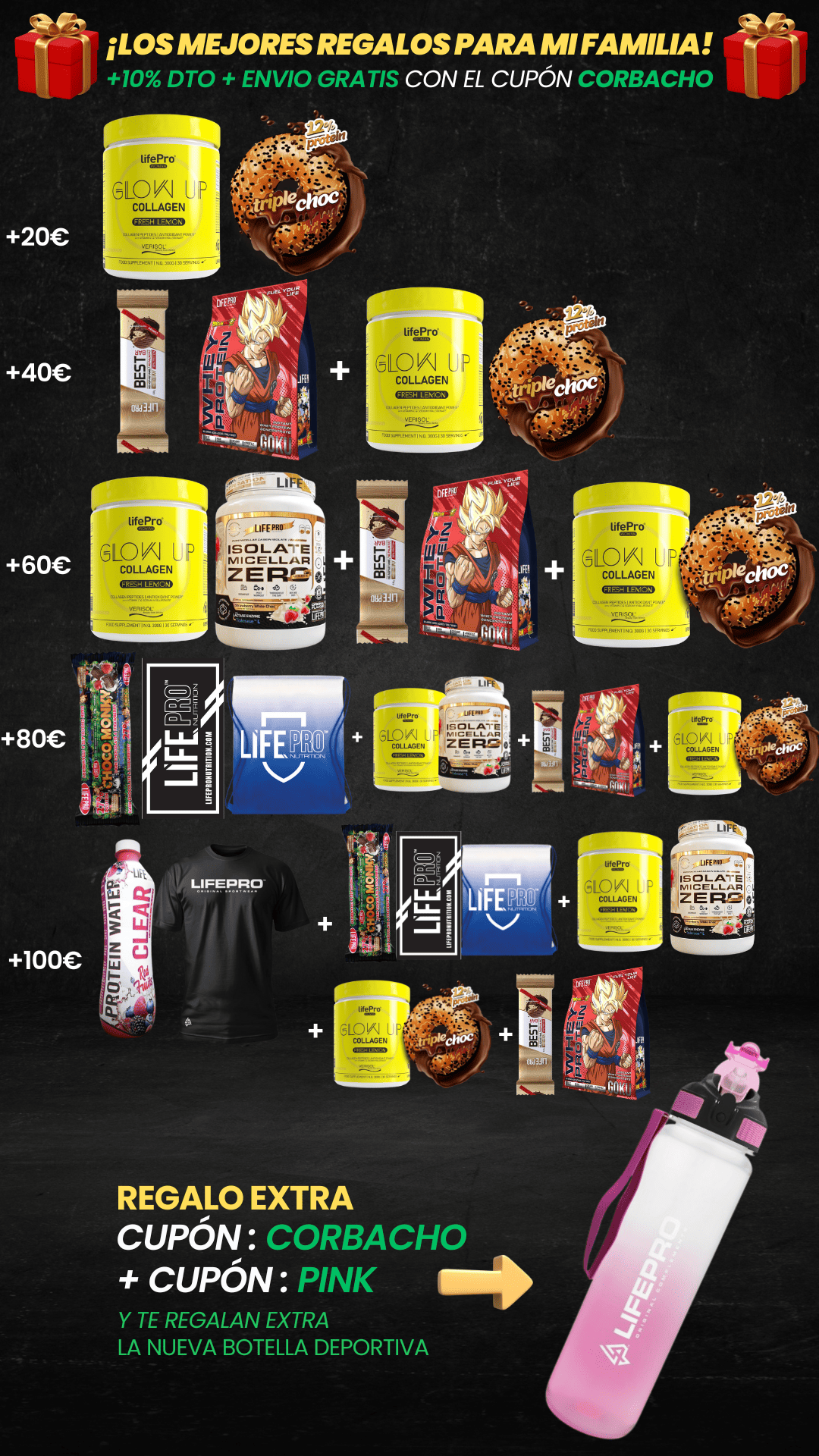 En todos los Pedidos pon el cupón CORBACHO + PINK y además te Regalan Extra la Nueva Botella Deportiva!